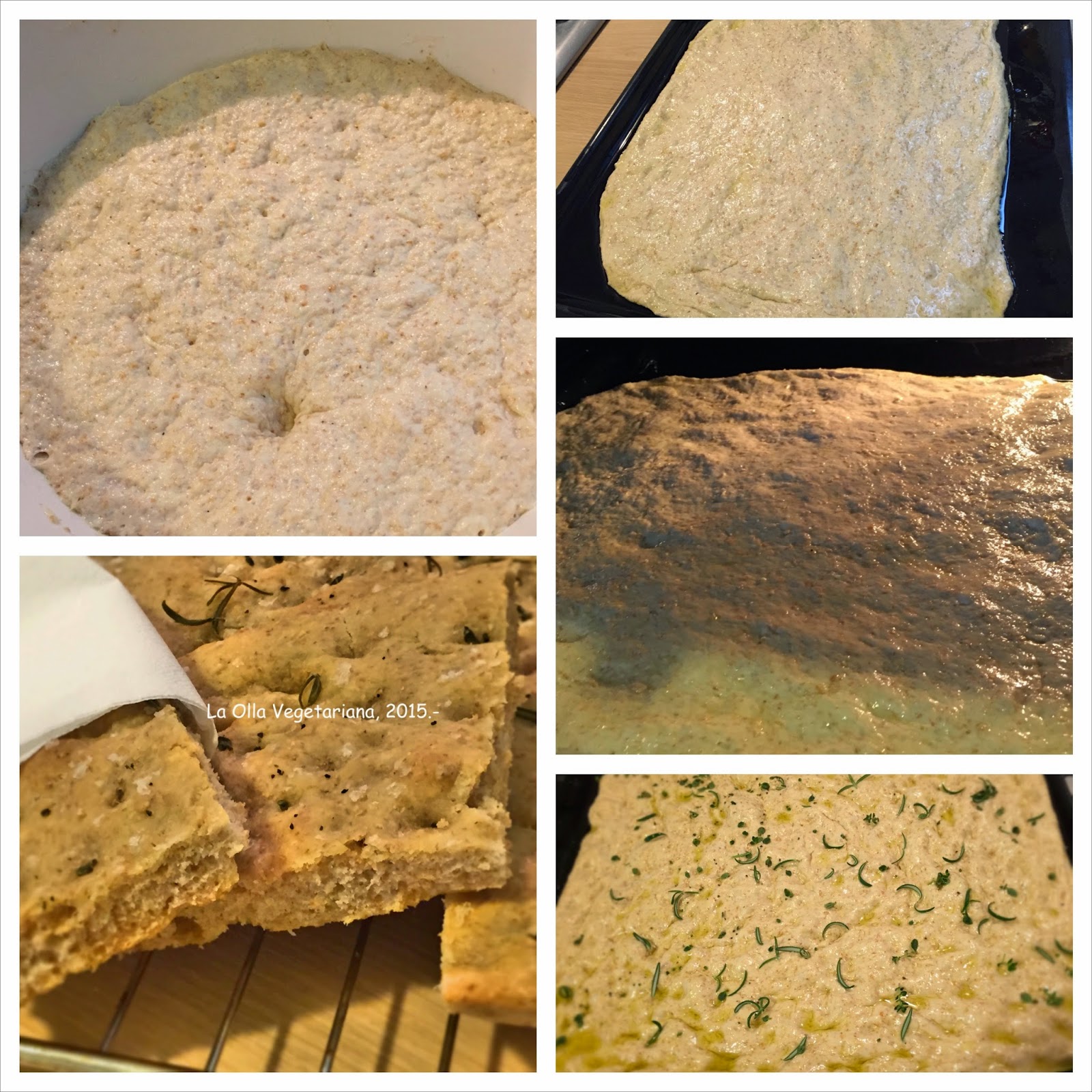 Es broma... pues esta focaccia la hice antes del último verano, pero por una cosa y otra me apetecía publicar recetas más frescas y siempre, la pobrecita, se queda relegada en "borradores"; es por eso que las fotos no están del todo bien y aparecen con ese horrible "marco"; es que no encuentro las originales para poderlas editar de nuevo... pero nada impide que la podáis disfrutar vosotros, pues está realmente rica, crujiente y bien aromática.